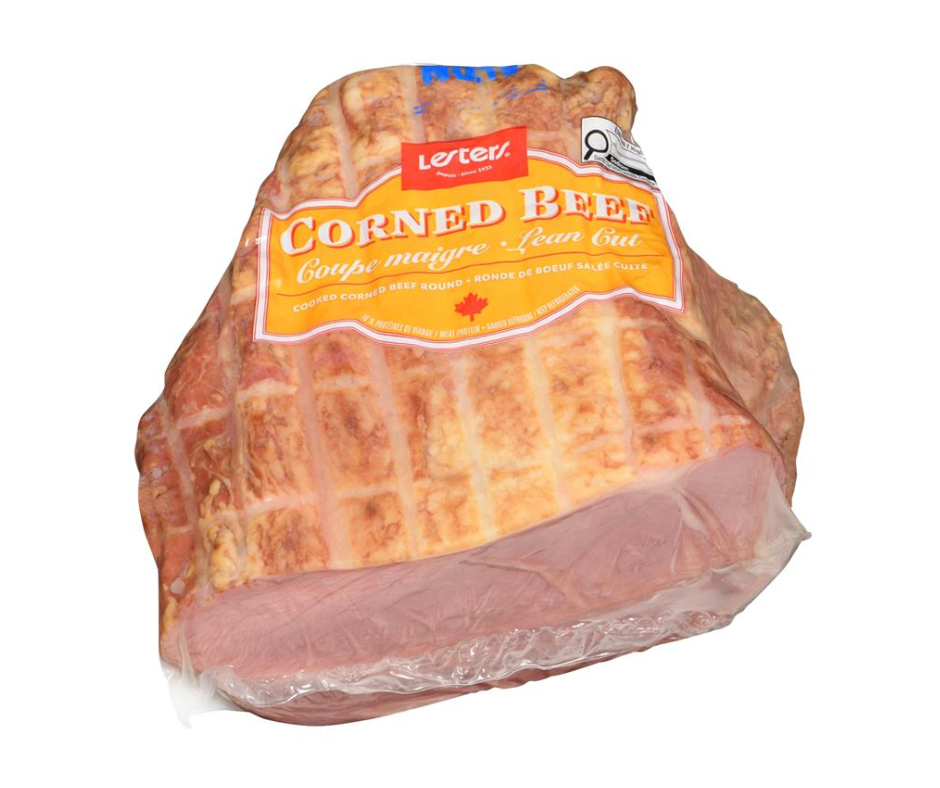 Ce bœuf est saumuré dans un mélange rehaussé d’épices. Au couleur vibrant et goût relevé, le corned beef est toujours apprécié, que ce soit en bouillie avec du chou, ou en sandwich avec du fromage suisse et de la choucroute. Cette version plus maigre est faite à partir de ronde de bœuf. Entièrement cuit, prêt à servir chaud ou froid.